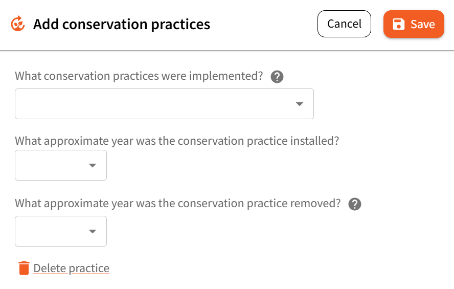 This section allows you to document conservation practices implemented on the field since 2008.