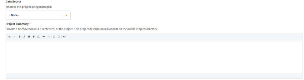 - A 3-5 sentence project summary that will be shown on our public Project Directory.