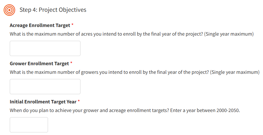 - The enrollment target year (the year you hope to achieve your acre and grower enrollment targets).